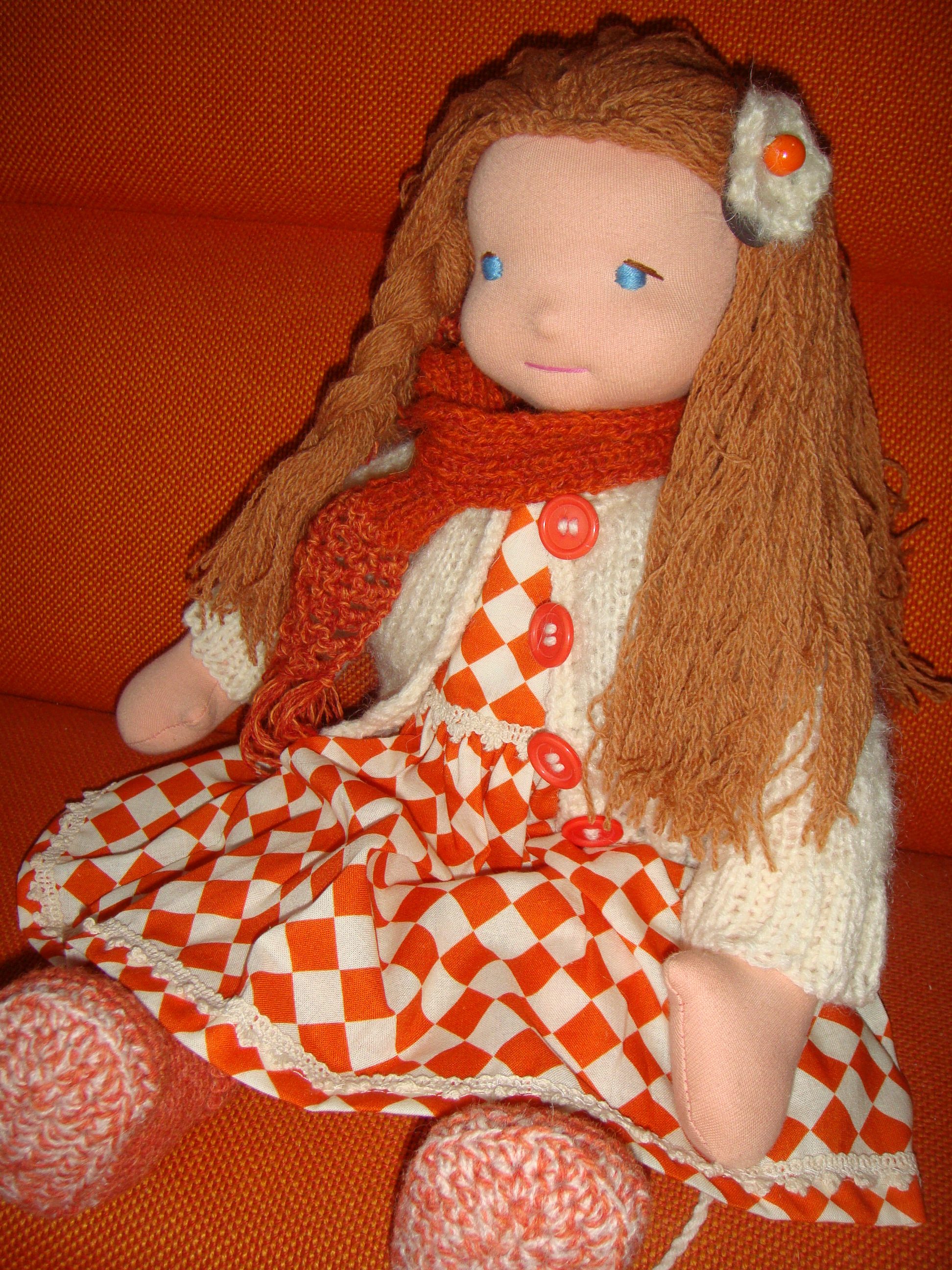 Yvonne Lise Sofie Garde Dukker til salg, Str. 42 cm 12. januar 202612. januar 2026 Yvonne med gyldent hår og blå øjne. Hun er i klædt sin orange ternede bomulds kjole med tilhørende cardigan strikket i råhvid mohair. Med følger også et orange halstørklæde, strikkede underbukser og et lille hårspænde Relateret