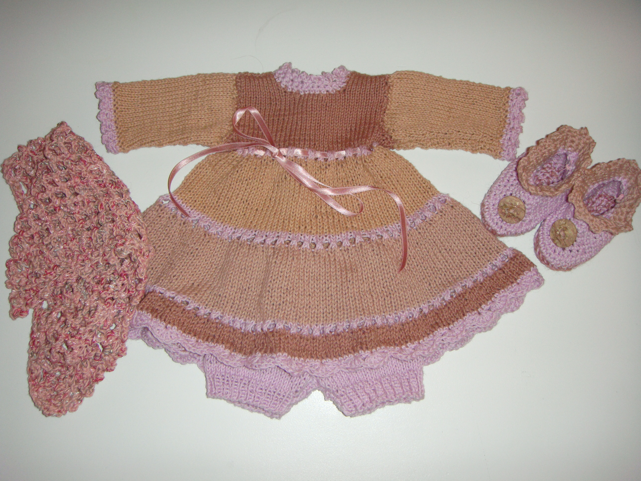 Kjolesæt NY Lise Sofie Garde Ikke kategoriseret 26. januar 202626. januar 2026 Kjolesæt strikket i økologisk bomuld, bestående af kjole med nederdel i etager, hæklet sjal, små hæklede støvler og strikkede underbukser. Farvenuancer: beige/rosa Relateret
