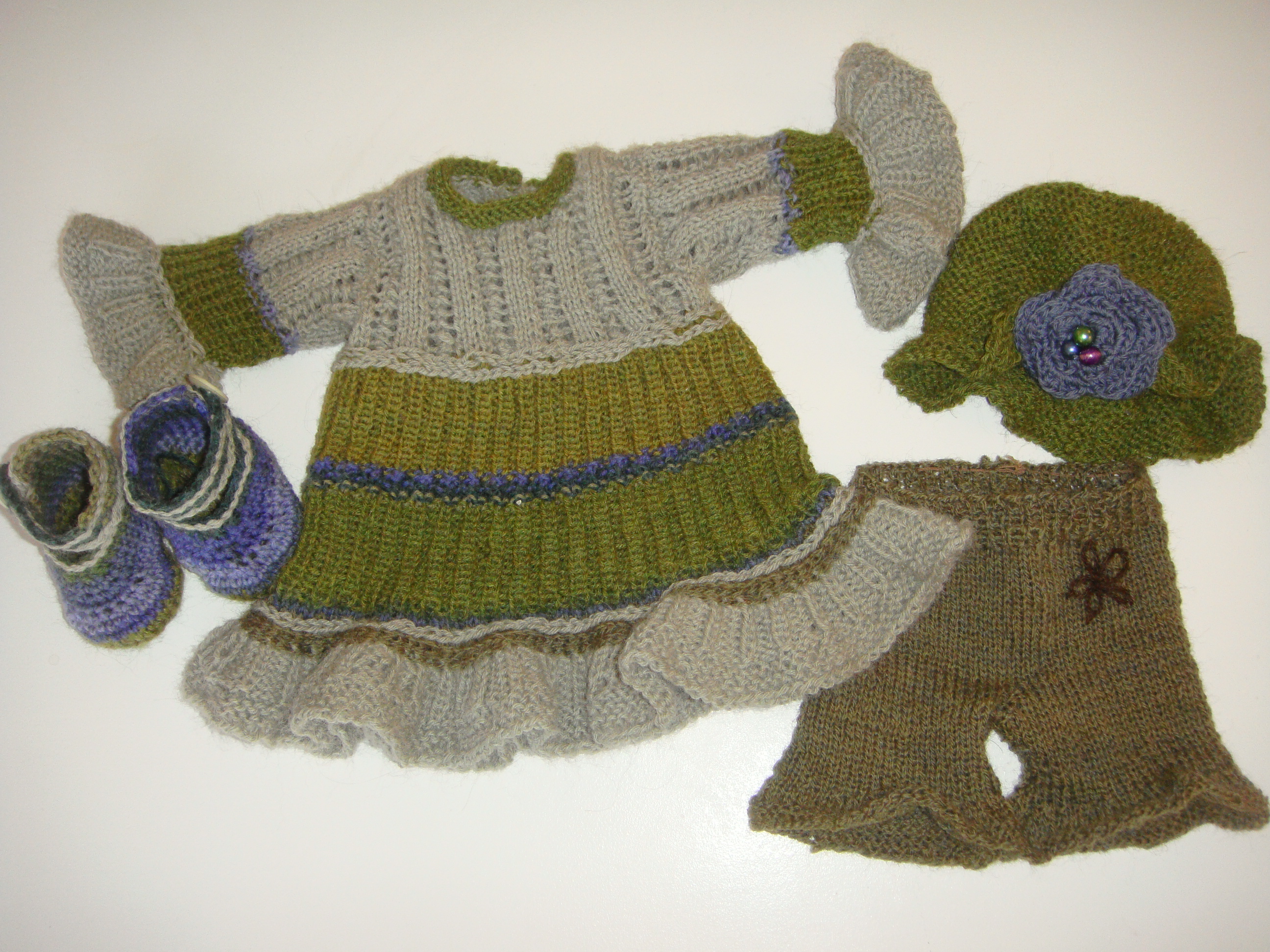 Kjolesæt Solgt Lise Sofie Garde Dukketøj, Str. 38 cm 6. marts 202629. marts 2026 Kjolesæt i Boheme stil bestående af strikket kjole, mamelukker, strikket hue og hæklede sko. Alt i grønlige nuancer og i ren uld Relateret
