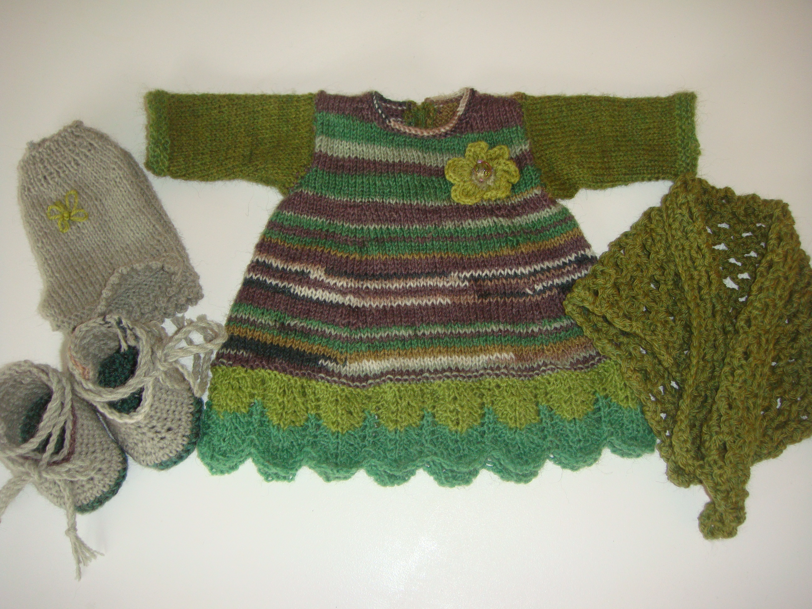 Kjolesæt Lise Sofie Garde Dukketøj, Str. 42 cm 17. marts 202629. marts 2026 Kjolesæt bestående af strikket ulden kjole med bred blondestrik forneden. Med følger kraftig hæklet sjal, strikkede underbukser og hæklede espadrillos Relateret